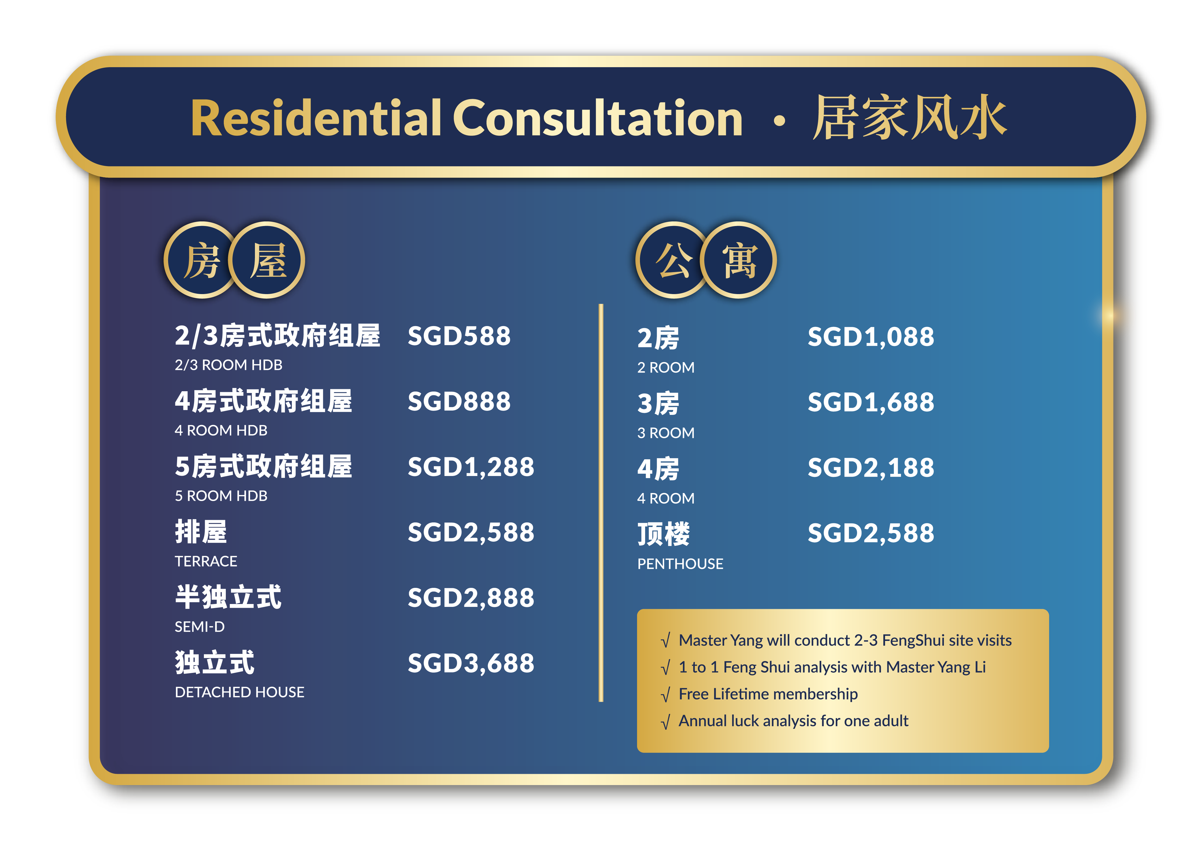 Master Yang is a leading Feng Shui Master & Consultant in Singapore, get advise for your Residential Home, Commercial and Office Feng Shui from the Top Feng Shui Master and Consultant in Singapore.